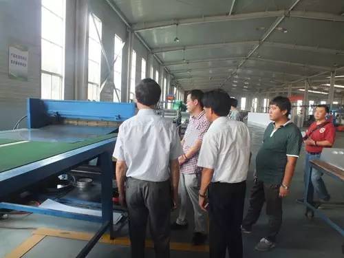 在參觀完太陽能真空集熱管制造車間后又到了太陽能工程設(shè)備總裝車間,先后參觀了全自動下料開平設(shè)備、轉(zhuǎn)塔式全自動數(shù)控沖床生產(chǎn)線、全自動外皮雙頭縮口滾花機、臥式反向積放發(fā)泡生產(chǎn)線、環(huán)戊烷聚氨酯高壓發(fā)泡機、全自動數(shù)控打包生產(chǎn)線以及壁掛太陽能生產(chǎn)線等等。