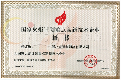 國家火炬計劃重點高新技術(shù)企業(yè)證書