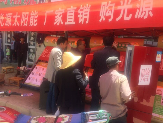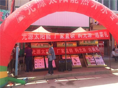 河北光源太陽能促銷活動還在火熱進行中。光源太陽能甘肅隴南西和縣姜席鎮(zhèn)凈水熱水促銷活動自2015年5月14日開始宣傳,現(xiàn)已銷售光源太陽能14臺。