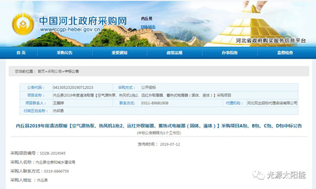 內(nèi)丘縣2019年度清潔取暖【空氣源熱泵、熱風機1拖2、遠紅外取暖器、蓄熱式電暖器(固體、液體)】采購項目入圍項目中標公告出爐,河北光源太陽能科技有限公司憑借強大的品牌實力、過硬的產(chǎn)品質量以及親民的售后服務榮登榜單。入圍產(chǎn)品為:蓄熱式電暖器(液態(tài))。