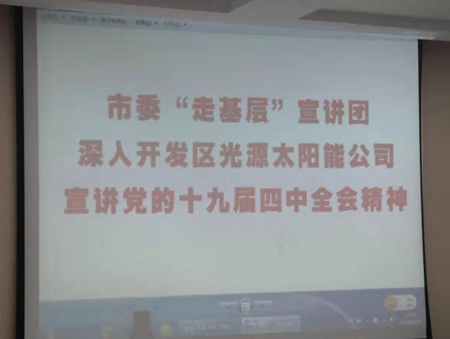 市委“走基層”宣講團(tuán)深入開(kāi)發(fā)區(qū)光源太陽(yáng)能公司宣講黨的十九屆四中全會(huì)精神